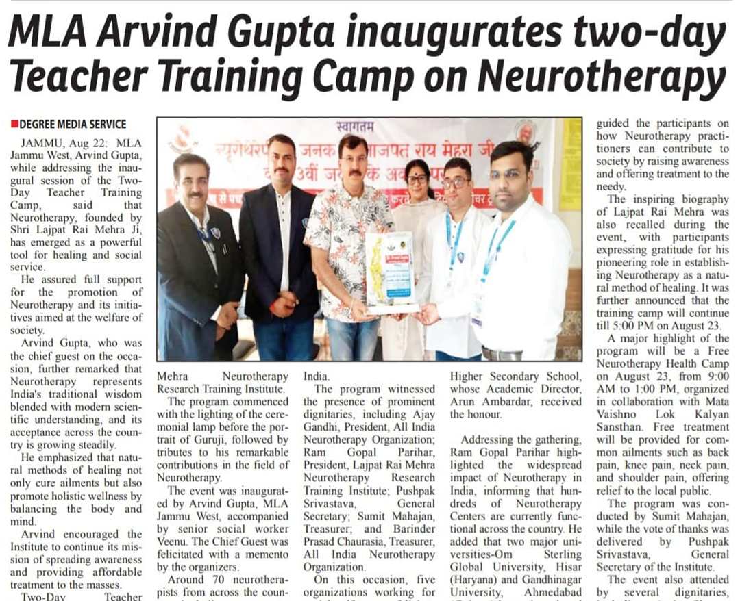 यदि आप मीडिया हाउस, स्वास्थ्य पत्रकार, या हेल्थ ब्लॉग चलाते हैं और न्यूरोथेरेपी पर फ़ील्ड रिपोर्ट बनाना चाहते हैं, तो हमसे संपर्क करें।